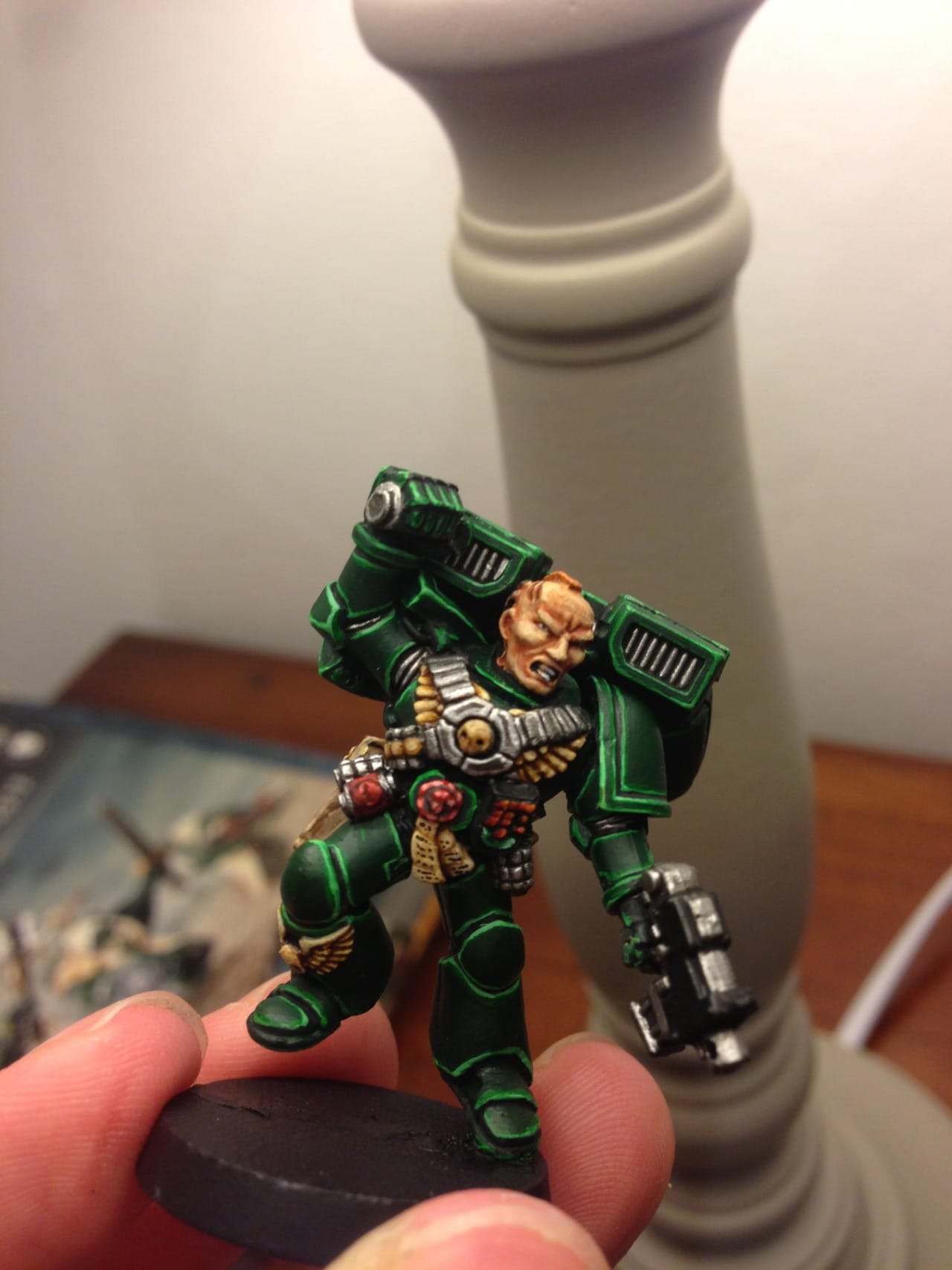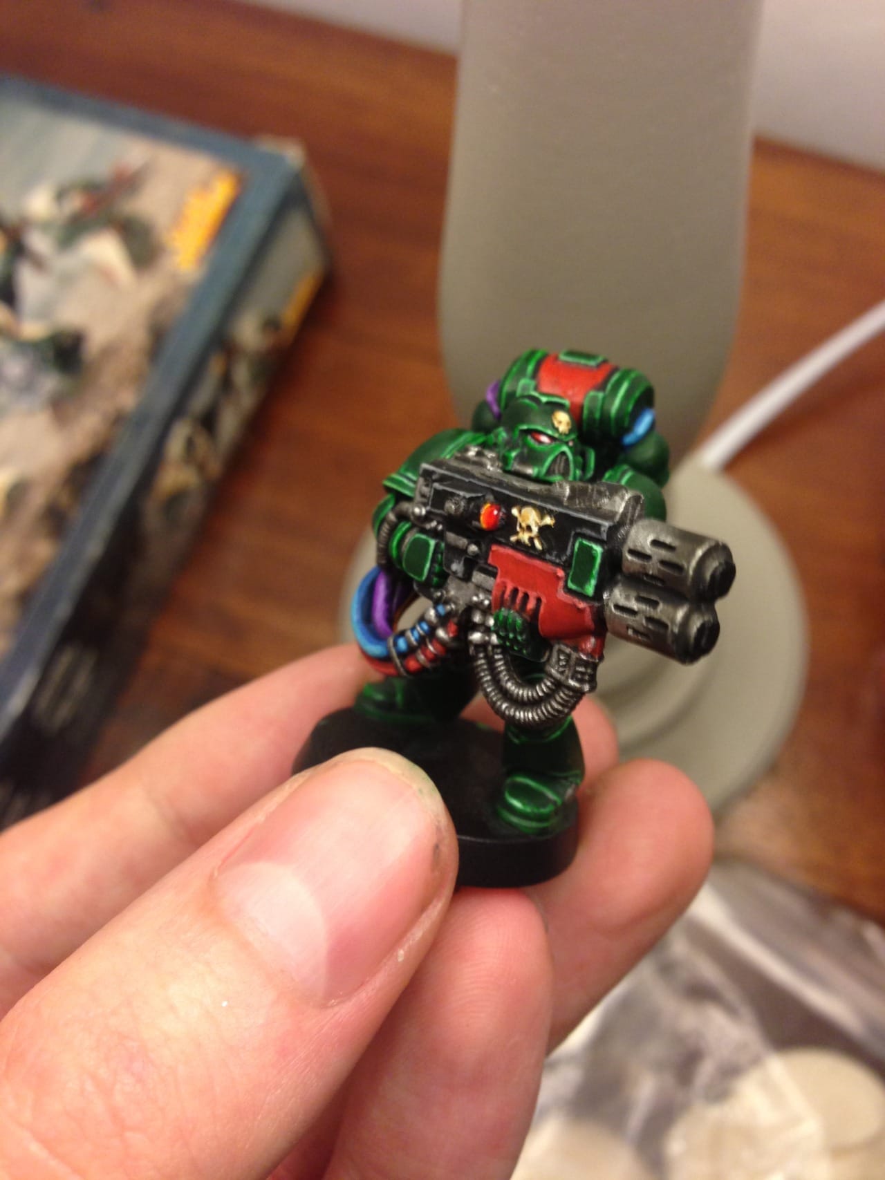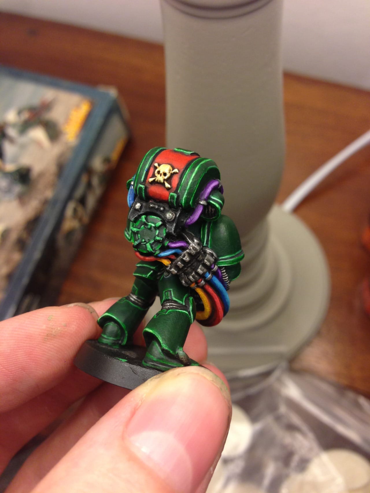 I wanted to use a really bright color pallet on the tubing on the multi-melta guy, I think it turned out well!