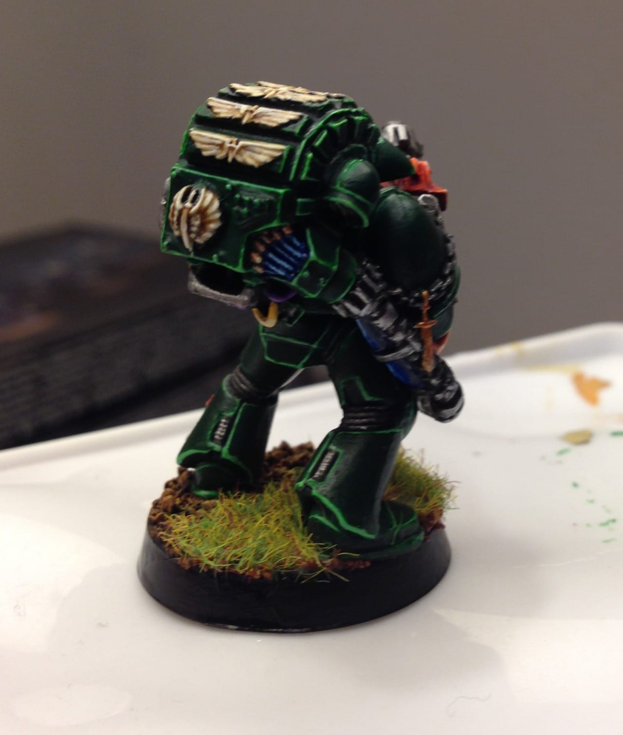 With my Dark Angels I generally use red fairly sparingly compared to the official codex color scheme. Generally I don’t paint entire gun casings red, opting to use red instead for smaller details such as the grips and handles.